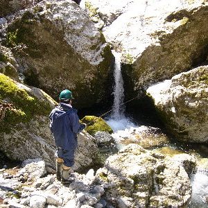 昼食の後、滝の右側を直登して源流部へと入って行った、植林が迫って手入れも行き届いているようだ、人の入った気配がするが魚の出具合は良好だった、きっと山師の気配だろう。
