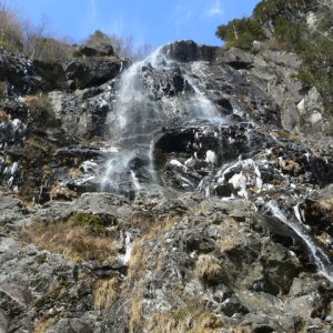 大滝、写真は下段の滝15m、見えないがその上にも15mの滝が待っていた。