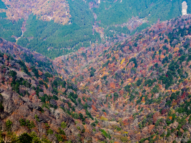 天狗塚の天狗峠から見た17.谷道川の最源流です。谷道川は植林のイメージが強いのですが、流石にここまで詰めてくれば自然林に覆われます。可なり昔の話ですがいいアマゴが居ました。